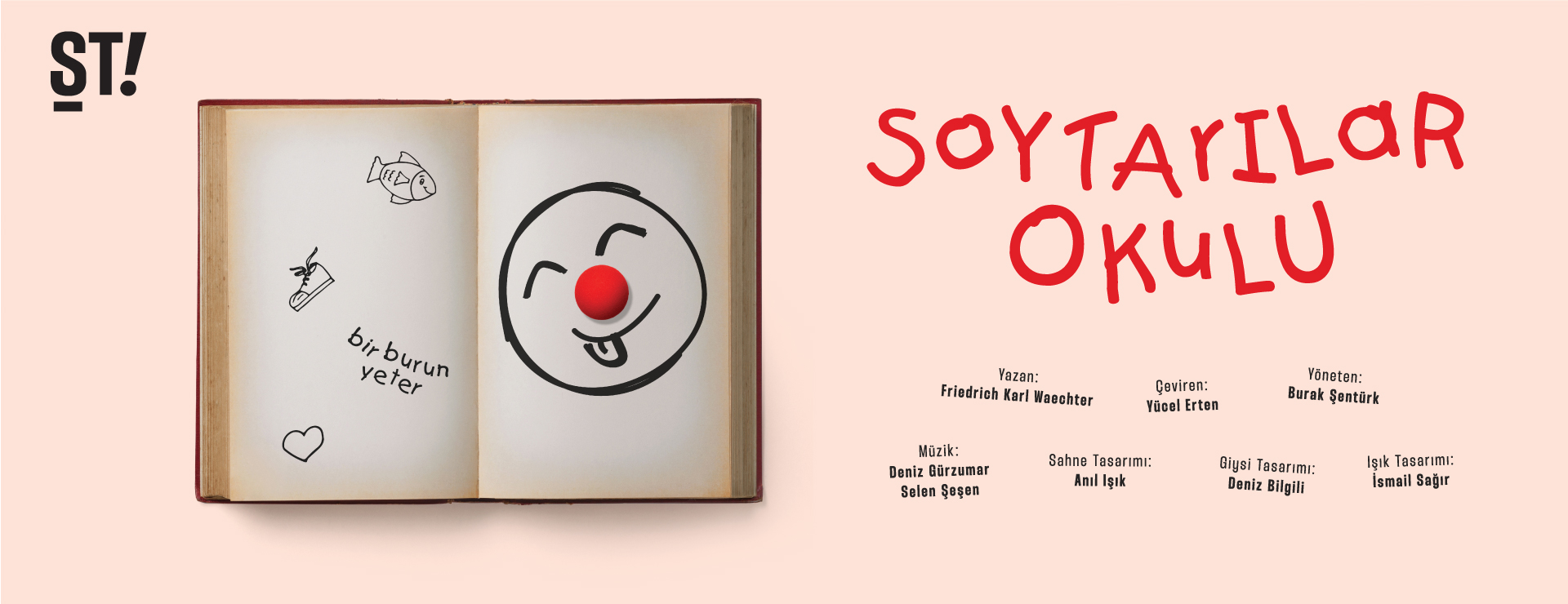 Friedrich Karl Waechter’in yazdığı, Yücel Erten’ in çevirdiği, uluslararası çocuk tiyatrosunun klasiklerinden sayılan “Soytarılar Okulu” 30 Nisan’dan itibaren İzmir Sanat Merkezi’nde! Tüm çocuk seyircilerimizi oyunumuza bekliyoruz. :) Unutmayın! “Bir burun yeter”